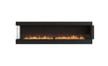Available in a timeless black finish, Flex Fireboxes come with stainless steel burners and black glass charcoal.