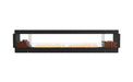 Available in a timeless black finish, Flex Fireboxes come with stainless steel burners and black glass charcoal.