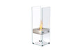 Made entirely of glass and steel, the Ghost is a slim framed fireplace that works equally well in residential and commercial spaces. Though its crisp lines and glass body give it a strong modern feel, its transparency allows it to fit into design schemes of any fashion and color.